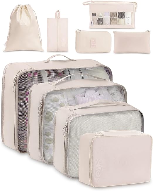 I feel like people either swear by packing cubes or find them pointless. I am a BIG fan of them…especially when I travel with the kids! I label all of mine (ie: Bathing suits, tops, underwear etc) and find them incredibly useful when we are staying at several hotels in one single trip. I place the packing cubes in the hotel drawers and take out what I need versus fully unpacking everything. If you are doing a trip with 1-2 night stops here and there, you can easily “unpack” and also stay super organized!