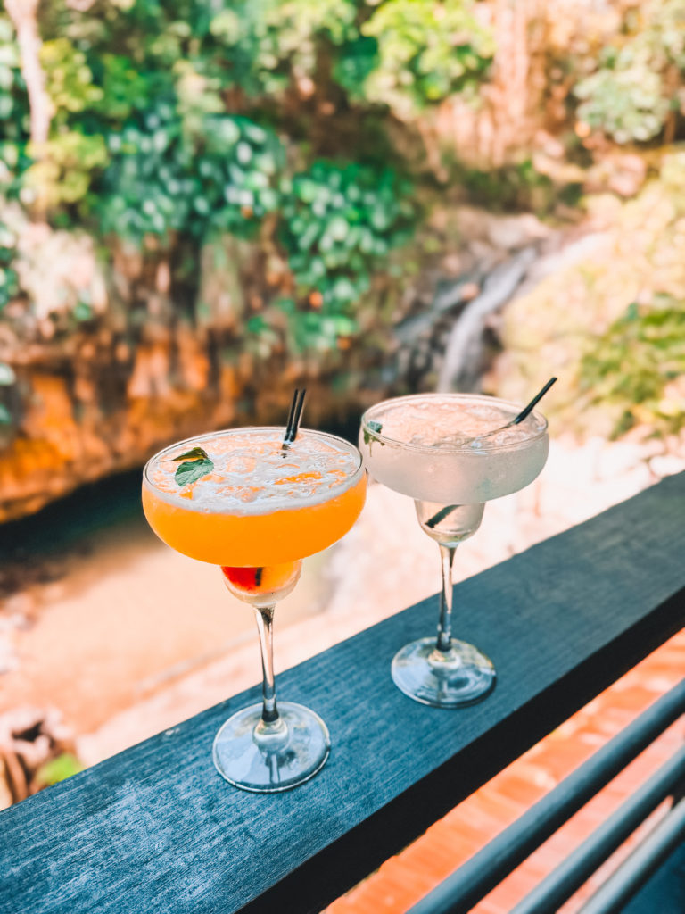 Wild Orchid is the restaurant within Annandale Falls and it does not disappoint! Can we take a second to admire these views……..and those drinks??