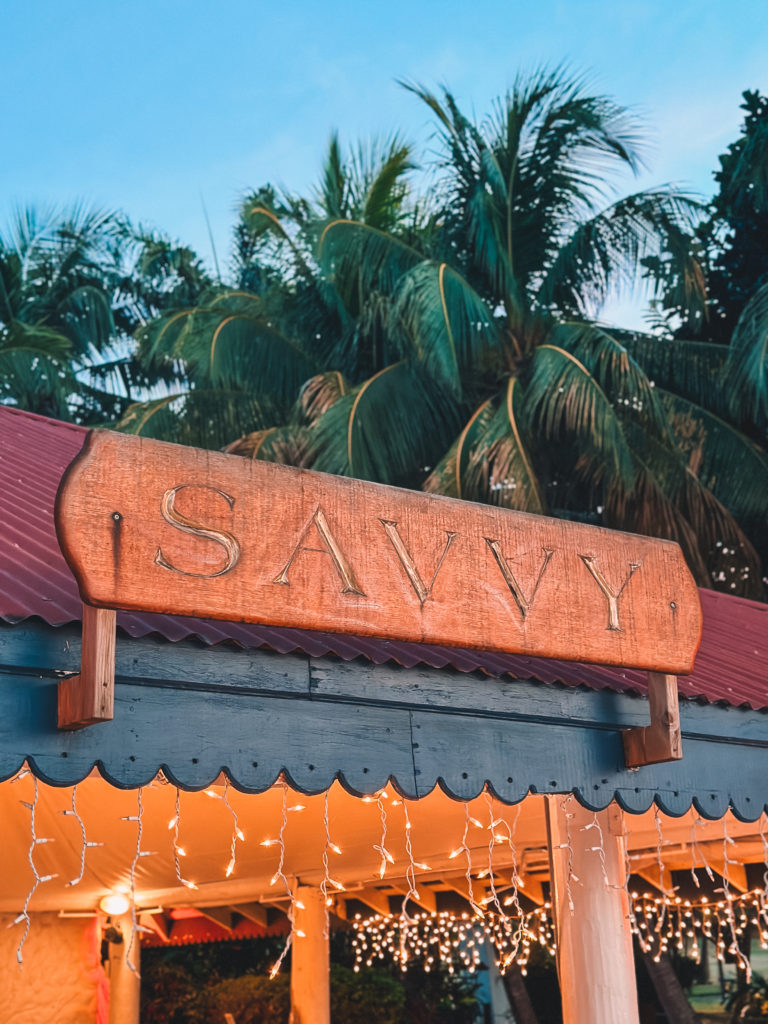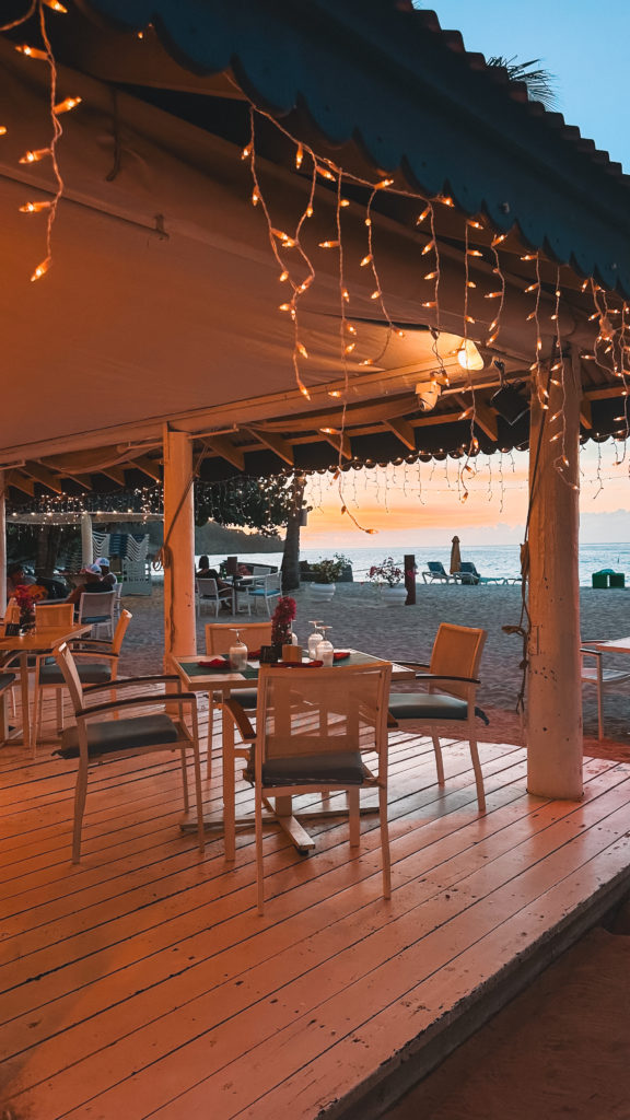 Located in the Mount Cinnamon hotel, Saavy’s is the perfect blend of casual meets romantic. There are twinkle lights surrounding the dining area, tables right in the sand and you can hear the waves crashing right in front of you.
